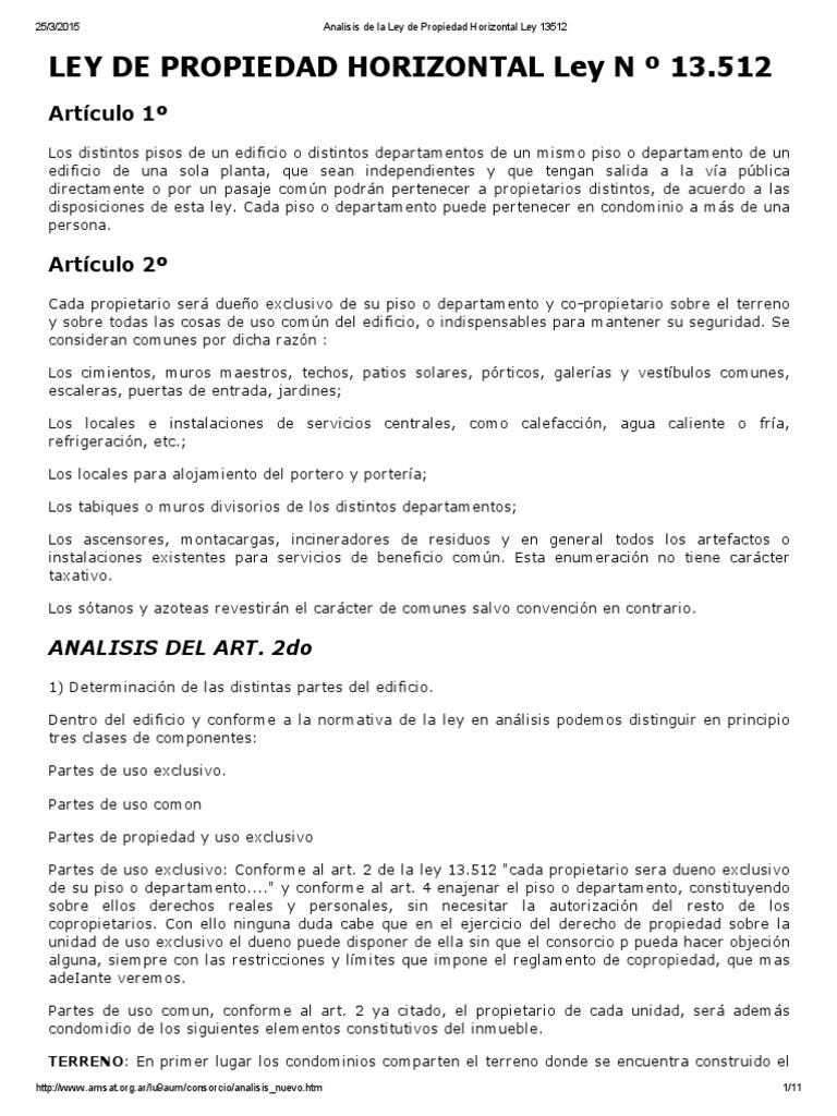 Ley 13512 del 13/10/1948 - Argentina.gob.ar Ley 13512. PROPIEDAD HORIZONTAL. Incorpora al Código Civil el Régimen de la Propiedad Horizontal. Sanción: 30/09/1948. Bs. As. 13/10/1948. B.O.: 18/10/1948