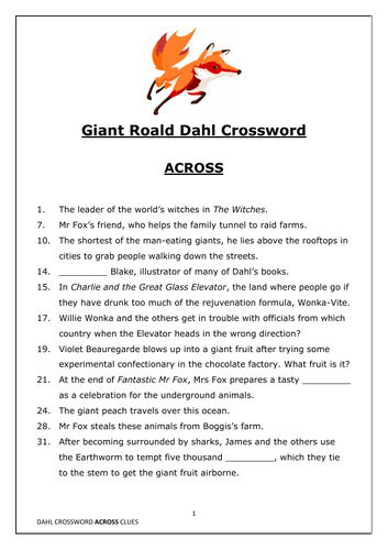 Writer dahl crossword clue